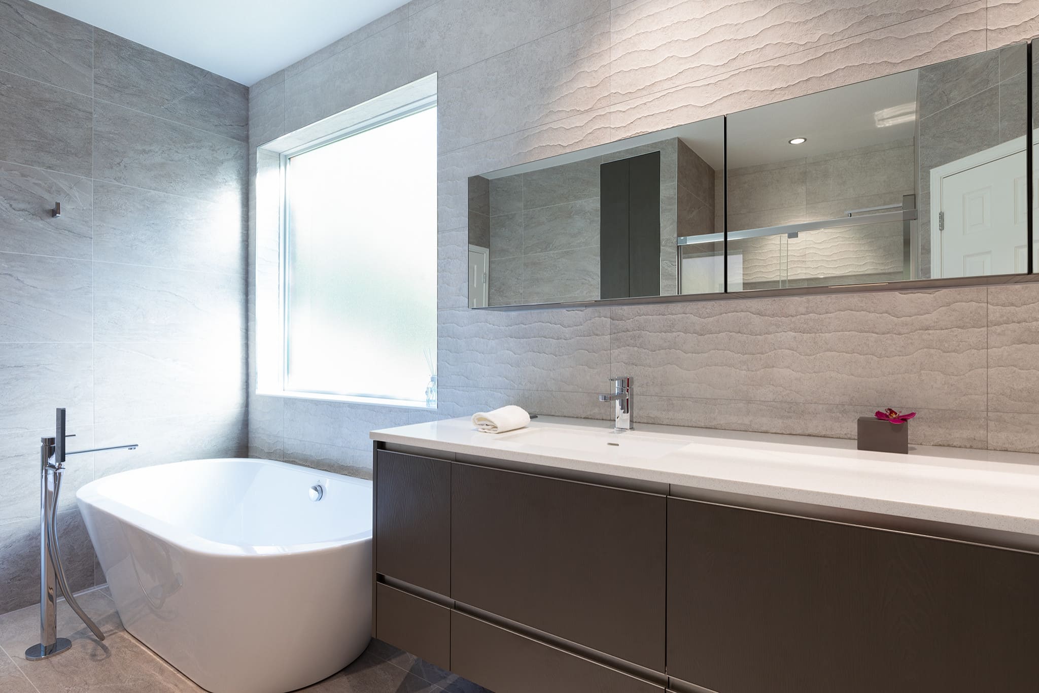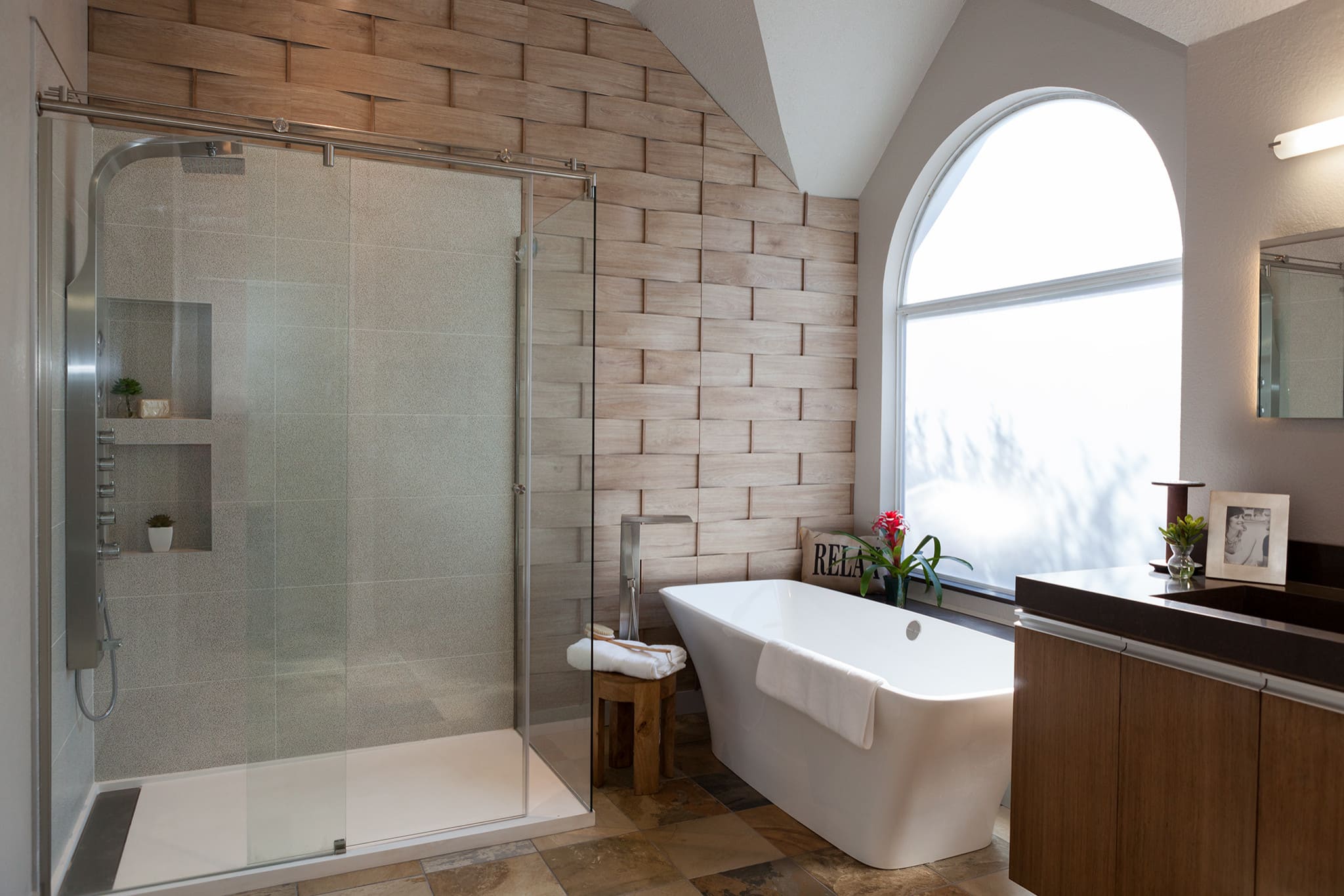 Award Winning - Contemporary Bath With Textured Wall